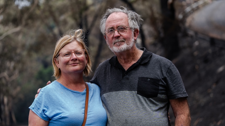 Sarra and Craig Saxon-Gill lost their home in the fire at Koolewong. (ABC News: Liam Patrick)
