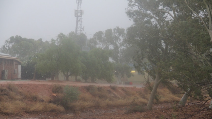 Wind and rain hits Exmouth as Tropical Cyclone Mitchell approaches the tourist town. (ABC Pilbara: Robert Koenig-Luck)