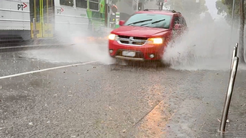Intense storms have dumped heavy rain across Melbourne, prompting warnings for people to shelter indoors. (ABC News: Billy Draper)