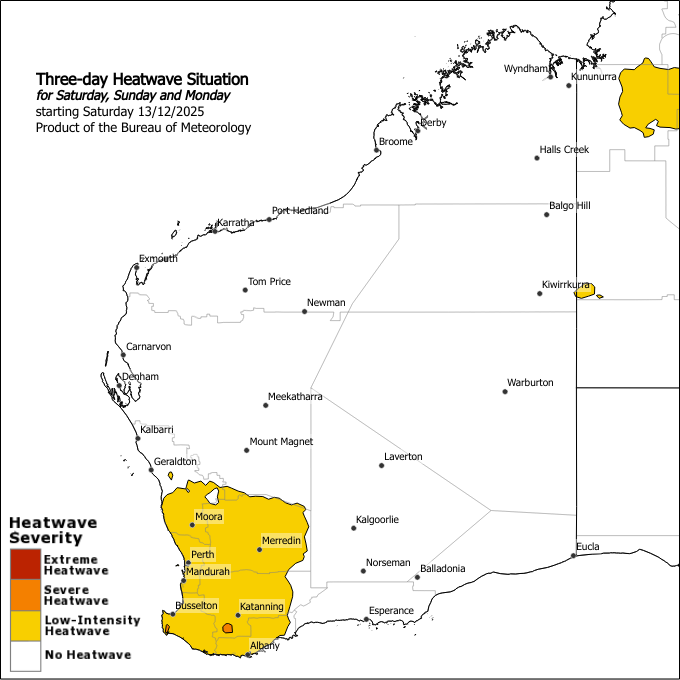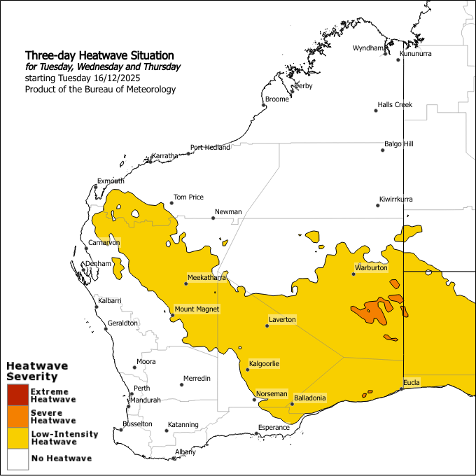 The next heatwave warning will be issued by 2:00pm WST on Tuesday 16 December 2025