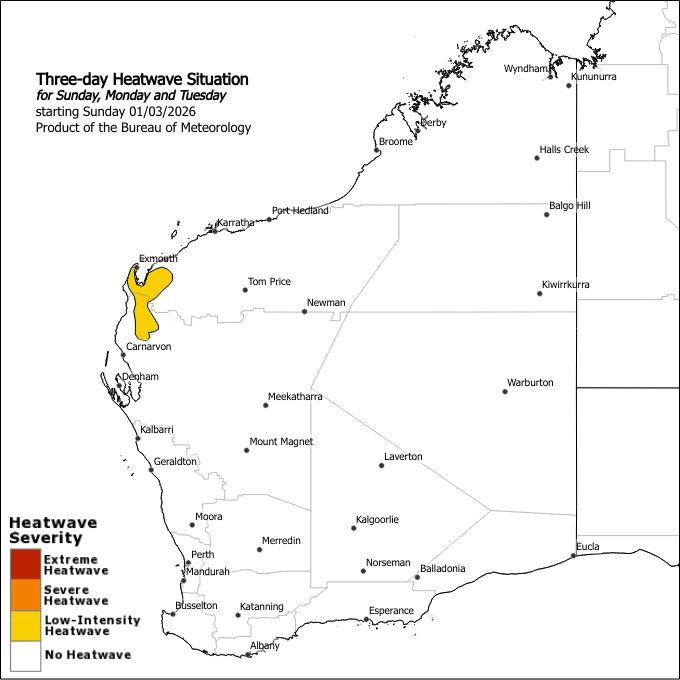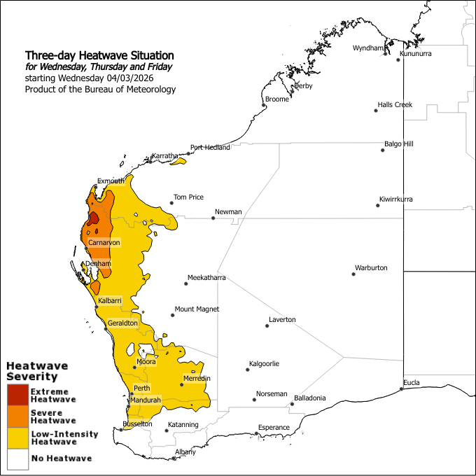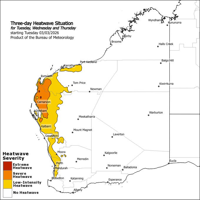 The next heatwave warning will be issued by 2:00pm WST on Wednesday 04 March 2026